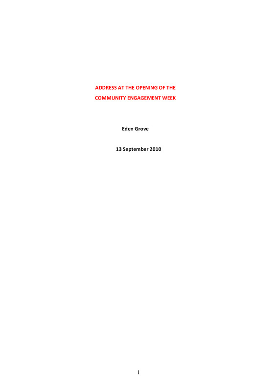 Address at the opening of the Community Engagement week