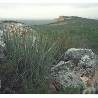 - Two clusters of Strelitzia juncea on kop. Western kop in distance, showing heavy quarring on southern flank. By railways for Port Elizabeth docks. Typical bushveld in rest of picture.