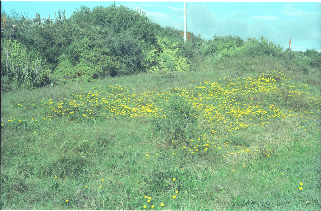 - Cuspidea cernua in full flower against dense backing of bush typical of the area.