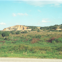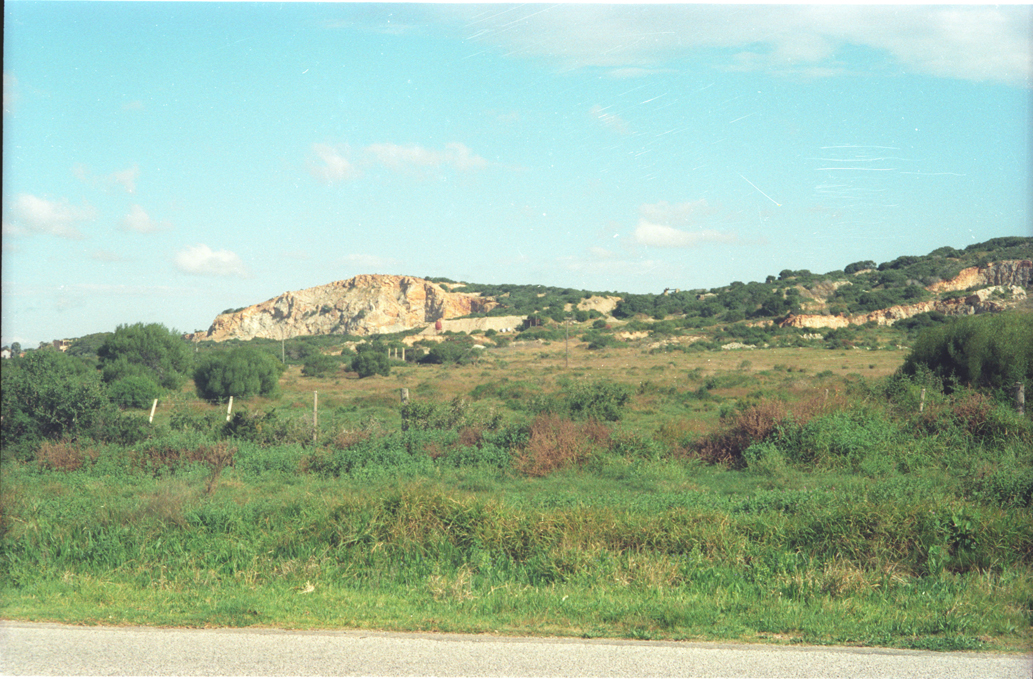- Distant view of western of the three Coega Kops showing a stone-quarry used for making of harbour at Port Elizabeth. At right is a glimpse of the stone -quarry at the base of the eastern kop.