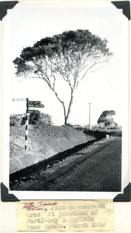 - Caption "Fine sneezewood tree at junction of Fort Grey, Buffalo Pass Roads. Mar. 1960"