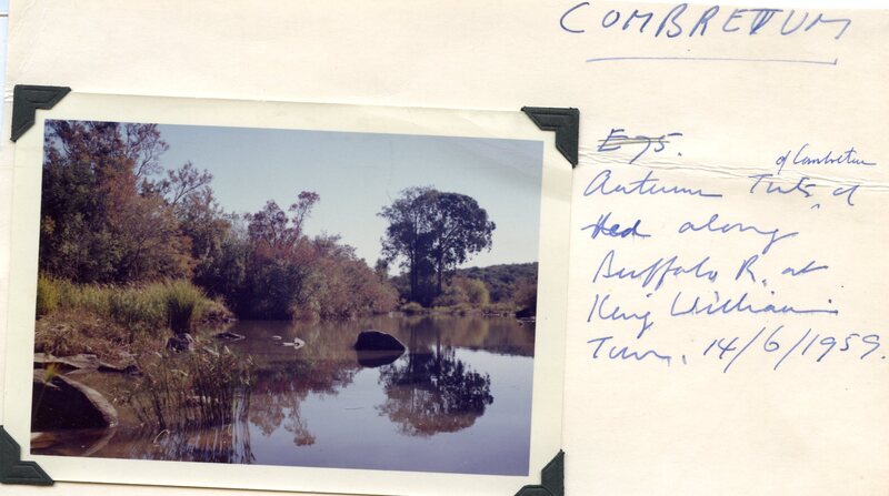 - Caption: "Autumn tufts of Combretum along Buffalo R. at King William's Town. 14/6/1959."