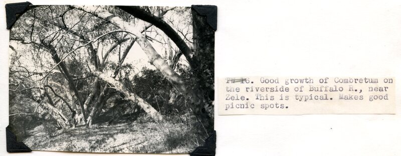 - Caption: "Good growth of Combretum on the riverside of Buffalo R., near Zele. This is typical. Makes good picnic spots."
