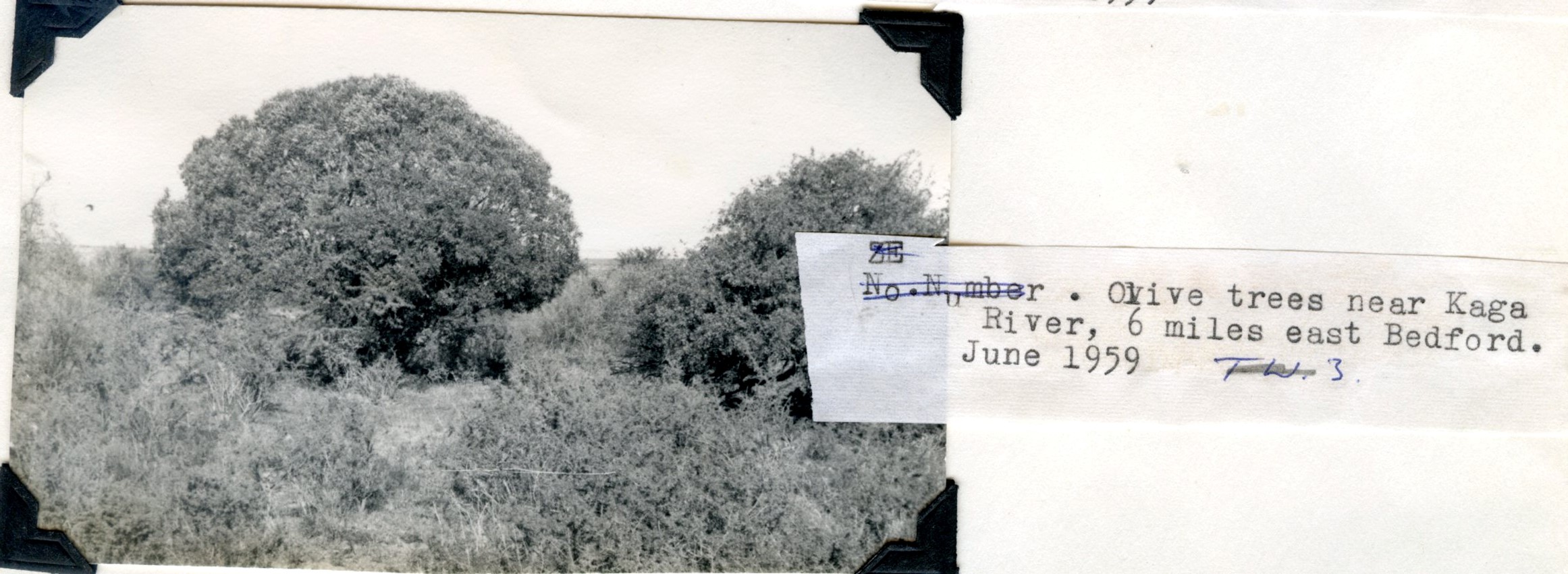 - Caption: "Olive trees near Kaga River, 6 miles east of Bedford. June 1959."
