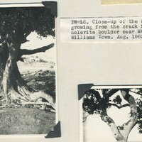 - Caption "Close-up of the White Milkwood growing from the crack in the dolerite boulder near Mt. Coke, King Williams Town. Aug. 1963."