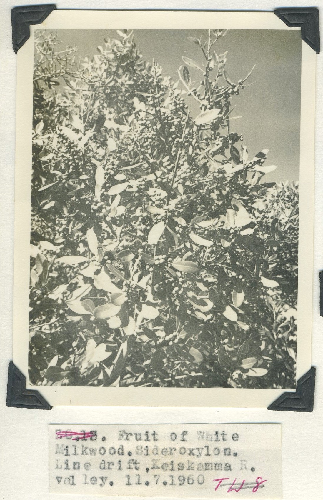 - Caption "Fruit of White Milkwood. Sideroxylon. Line drift, Keiskamma R. valley. 11-07-1960."