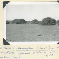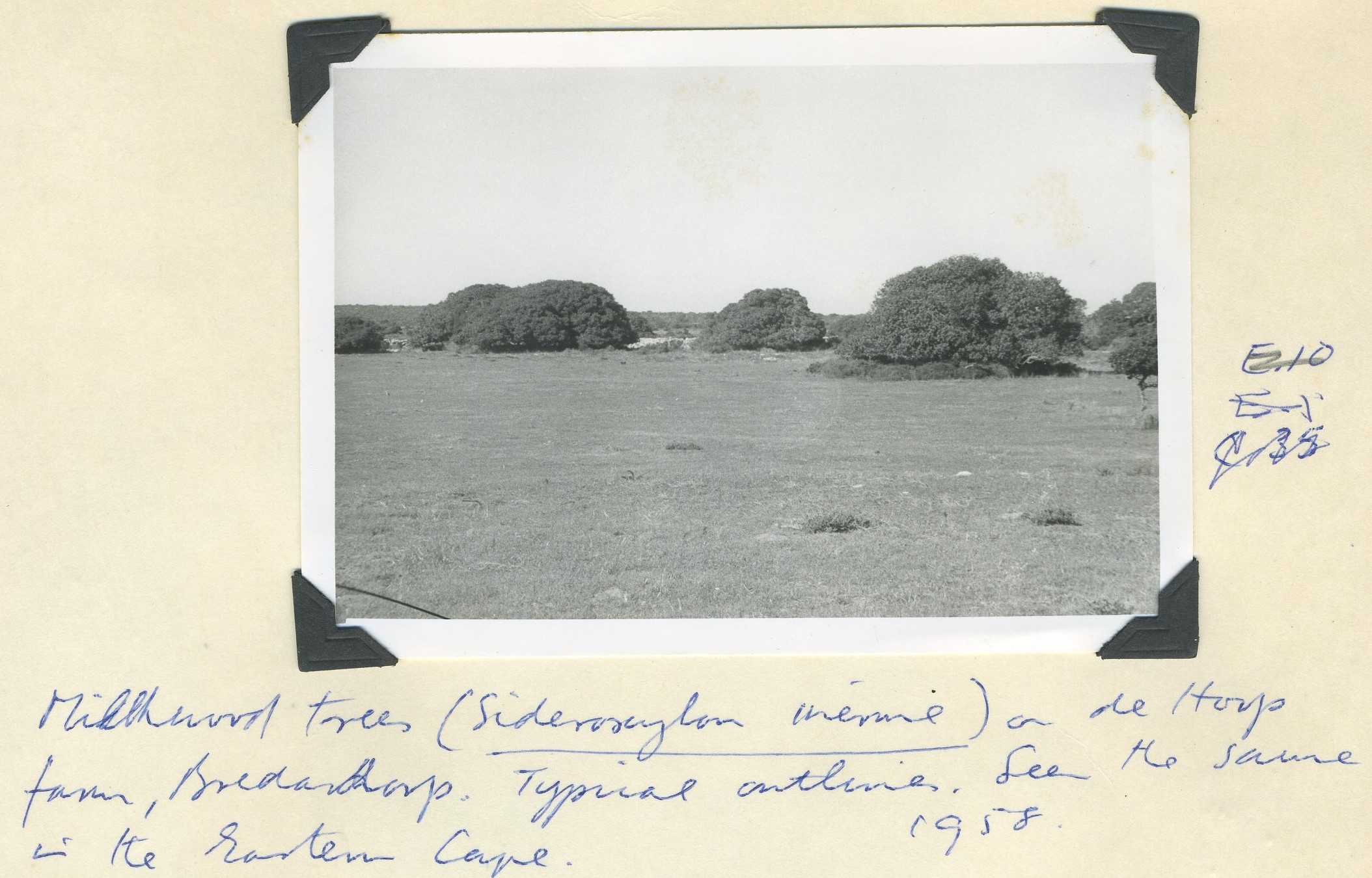 - Caption "Milkwood trees (Sideroxylon inerme) on de Hoop farm, Bredsdorp. Typical outline. See the same in the Eastern Cape. 1958."