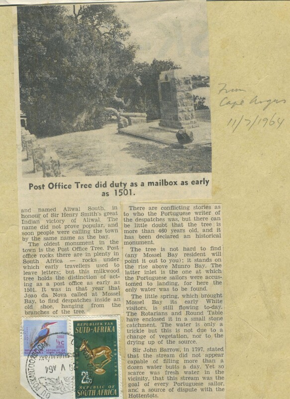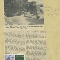 - Caption "Post Office Tree did duty as a mailbox as early as 1501. Cape Argus. 11-07-1964."