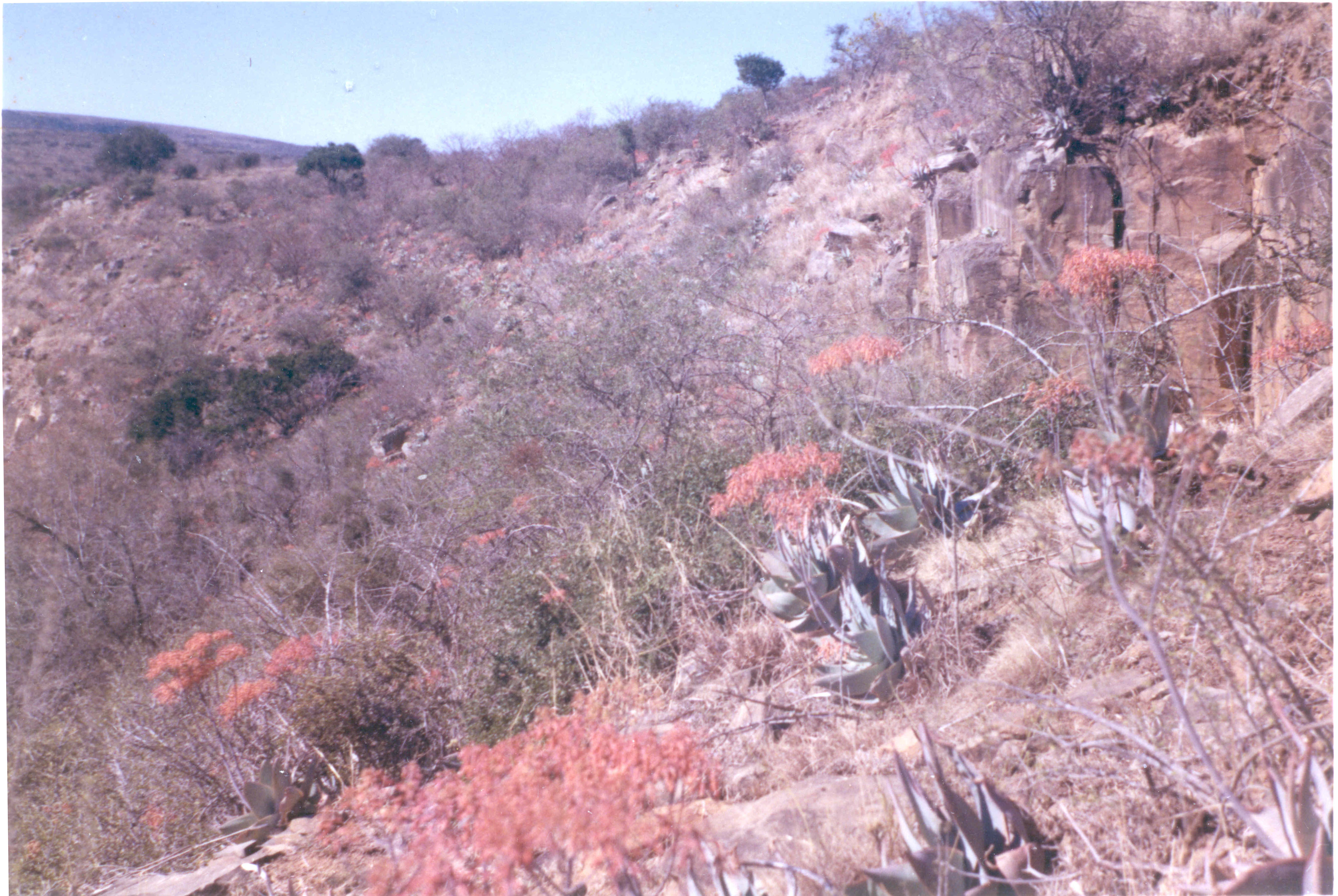 Northfacing slope down to the Buffalo River, 5 km north of King William's Town, Ciskei