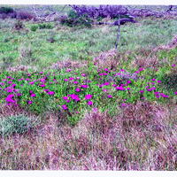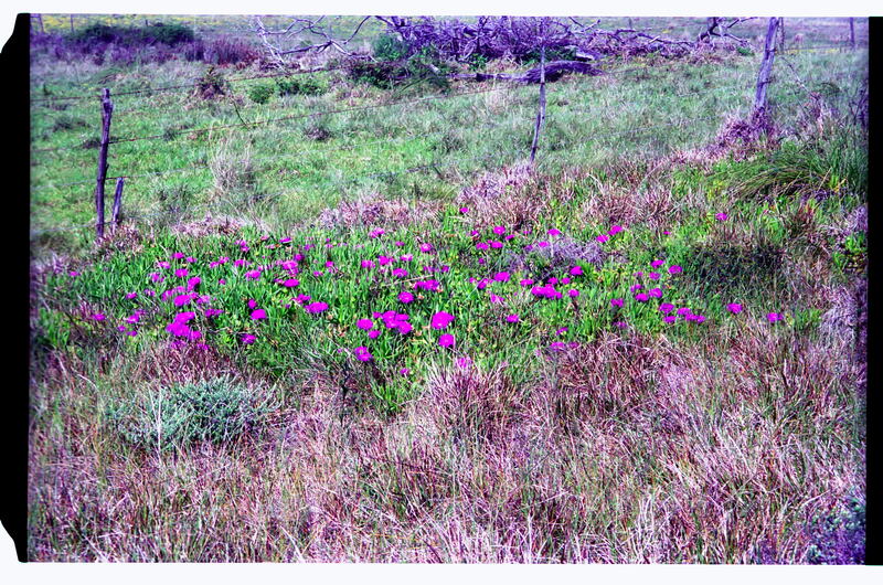 - Roadside Carpobrotus deliciosus, one of many now flowering after winter rains with a few yellow flowering examples nearby.