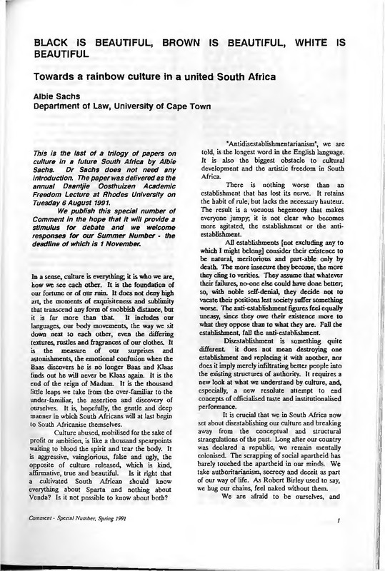 Black is beautiful, brown is beautiful, white is beautiful : towards a rainbow culture in a united South Africa