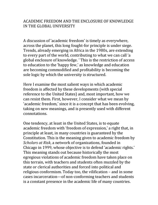 - Academic freedom and the enclosure of knowledge in the global university