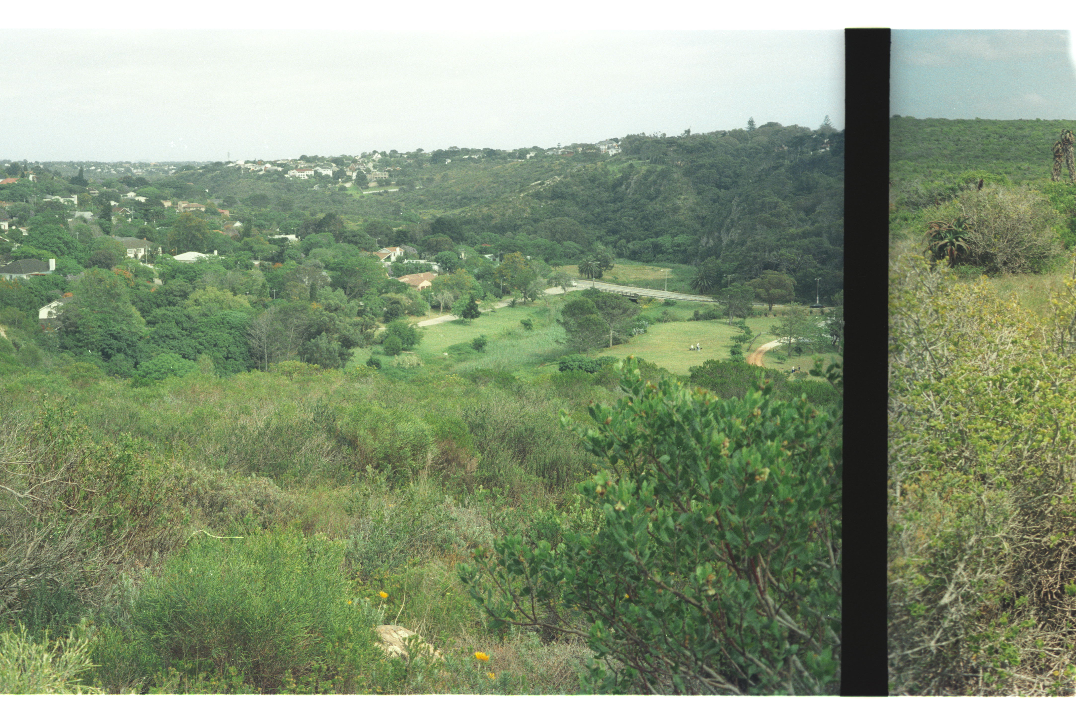 - Target Kloof road centrally with Settler's Park Reserve in valley bottom in right centre of photo.