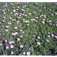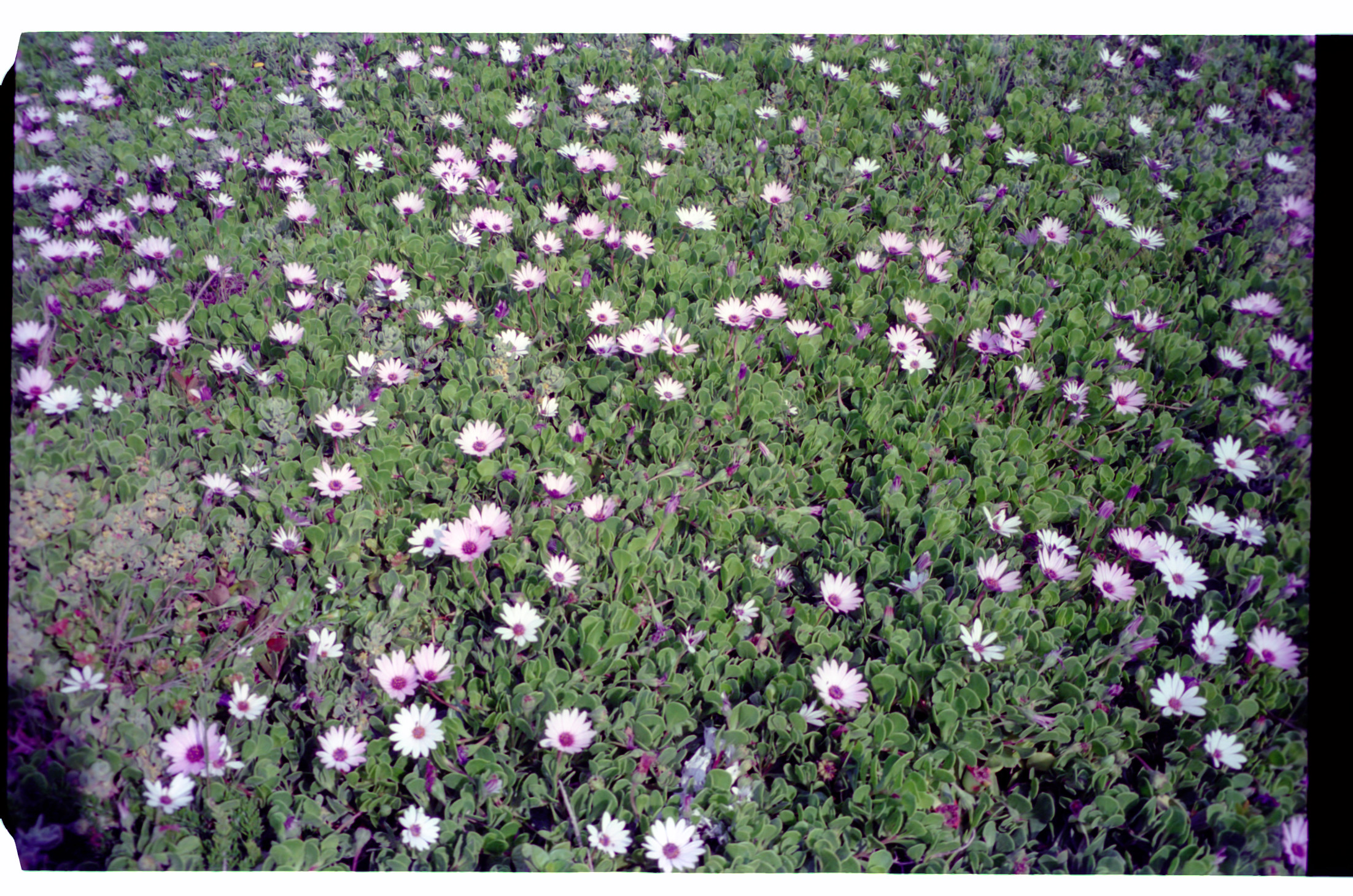 - Close-up of Osteospermum fruticosum daisies showing density within a much larger patch.