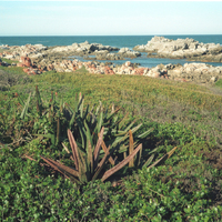 - Cluster of Gasteria acinacifolia in dense, ankle-deep coastal scrub (mostly wind-clipped milkwood Sideroxylon inerme). Other clusters, though smaller, grew in the area.