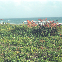 - Fine example of Gasteria acinacifolia plants in dense coastal woody scrub, heavily wind-blown.