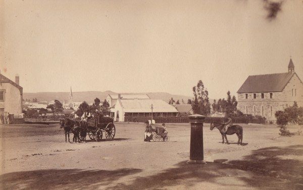 Early Grahamstown: Horse-drawn carriage and roadside postbox