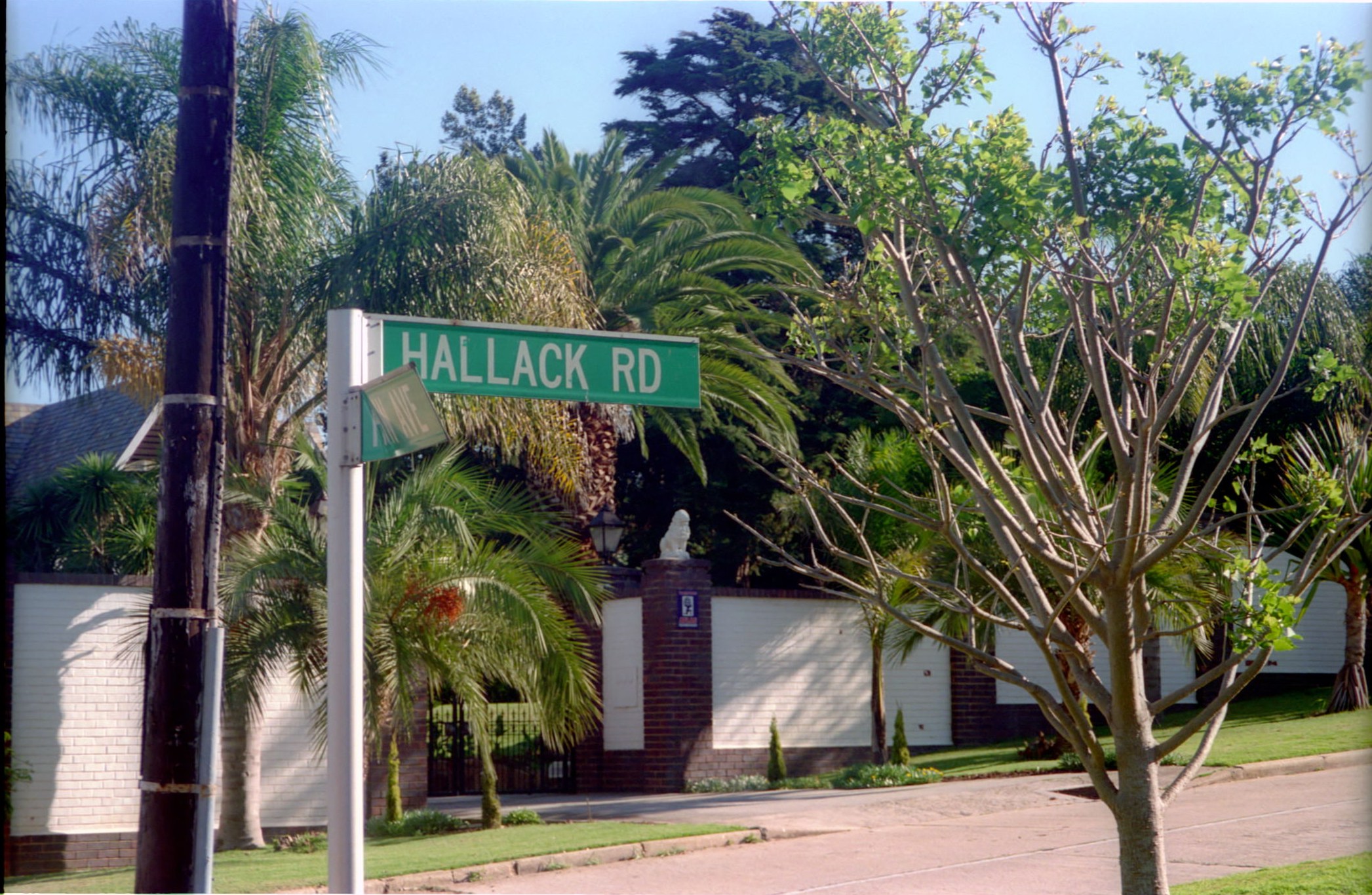 - Hallack Street signpost off Park Drive, Port Elizabeth - named in honour of Mr. Russell Hallack (1824-1903) a Port Elizabeth businessman and naturalist who lived in Park Drive.