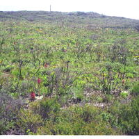 - Many Satyrium princeps flowering well among veld burnt in January 1998 (9 months before). Note burned plant remains; also wealth of herbage re-growth.