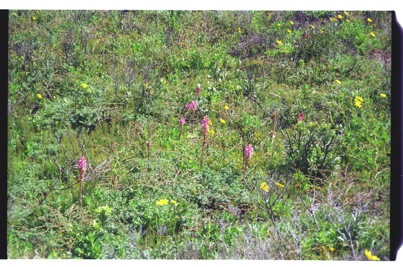 - Satyrium membraceum and S. princeps in dense herbage regrowth after fire nine months before.