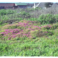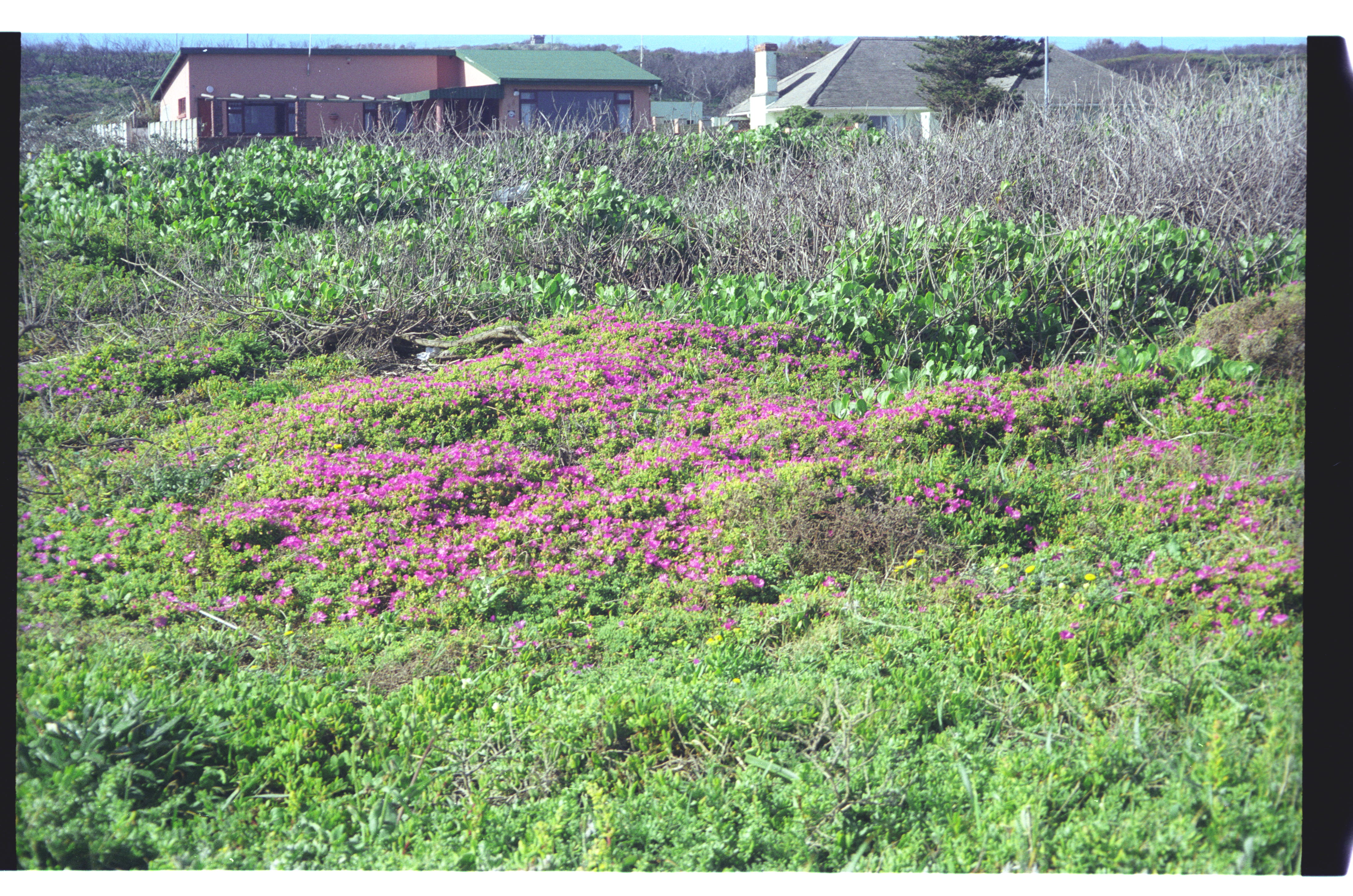 - Mesembryanthemum en masse on flat area between houses and cliff-verge. Other such clusters nearby.
