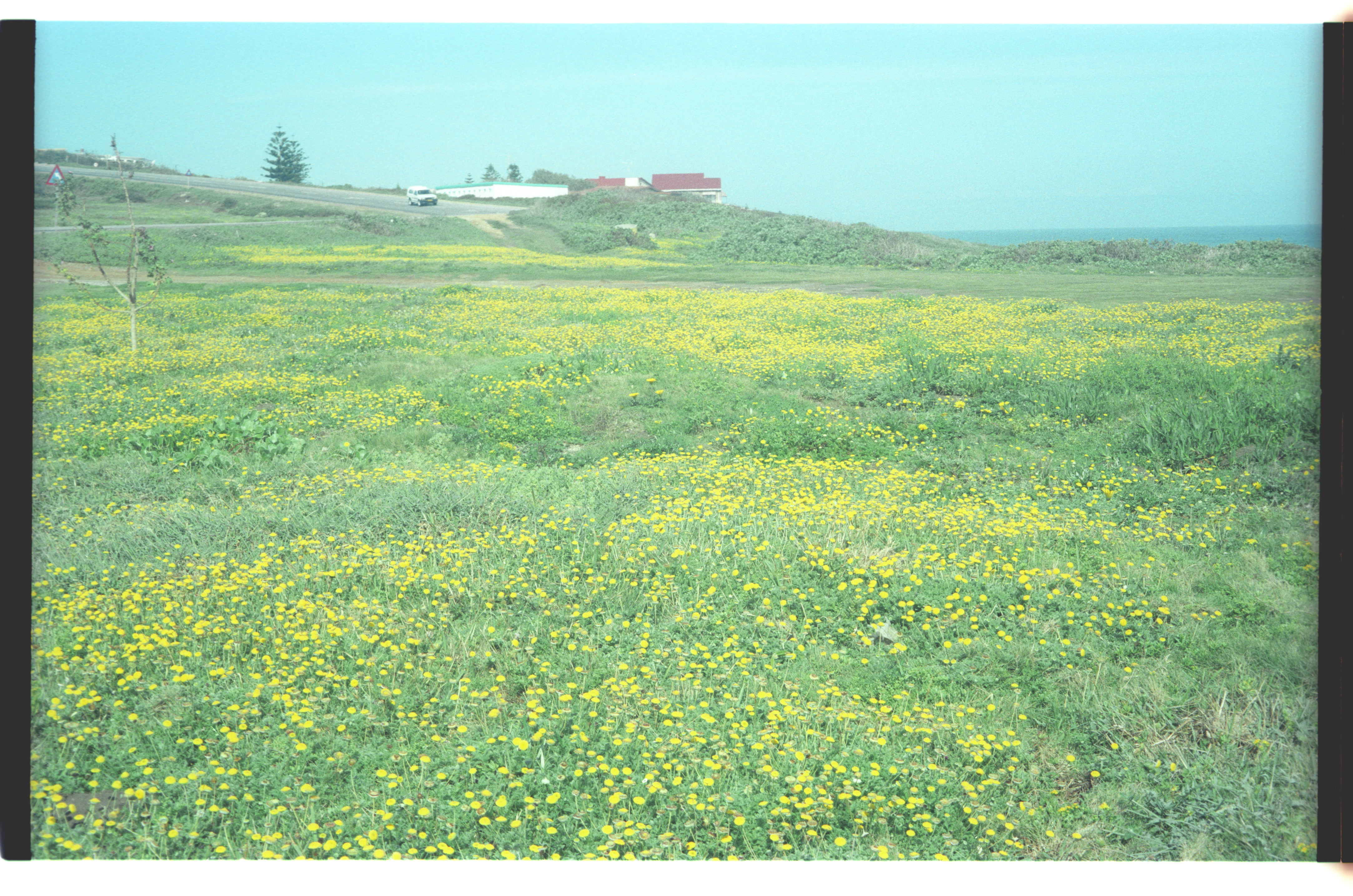 - Fine spread of Cotula coronopifolia on grassy verge below Seaview Hotel. Good season.