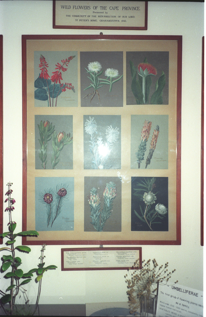 - Display Sister Jeannie's flower paintings in foyer. A gift from Sisters of the Community of the Resurrection, per kind favour, the Curator, Tony Dold. (the white spot is a light reflection).