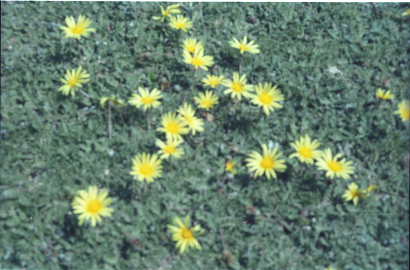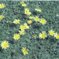 - Close-up of a single patch of Cape Weed Arctotheca calendula after recent good rains.