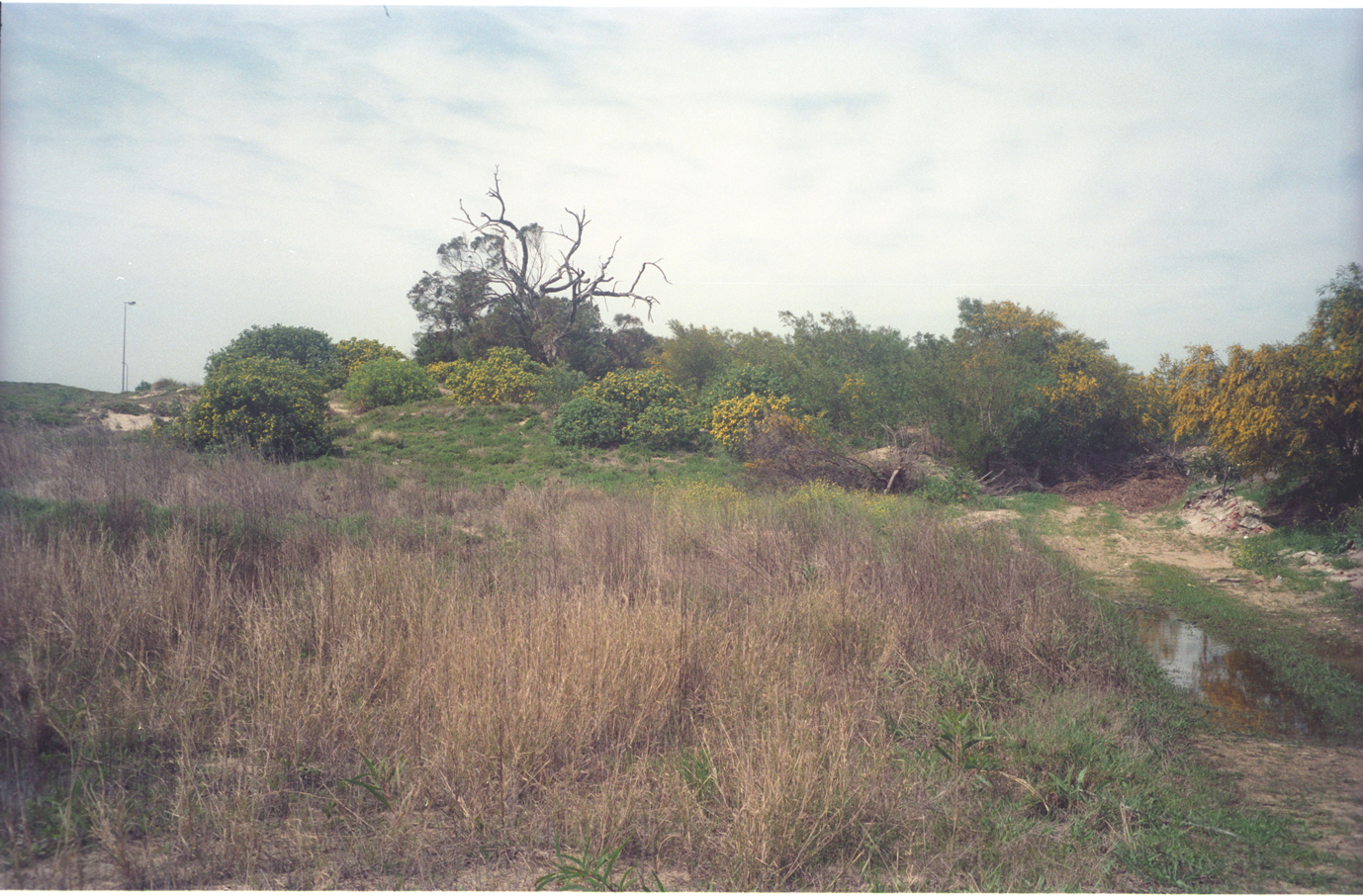 - Relict hollow in dunes with good-flowering Bitou (Chrysanthemoides monilifera) almost certain to be destroyed by housing development.
