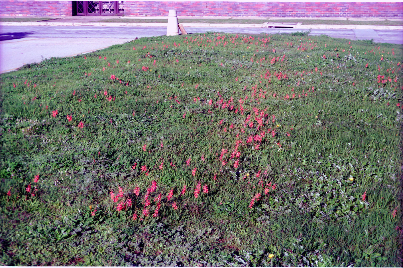 - Massed Tritonia securigera on lawn. Brighton Drive in background.