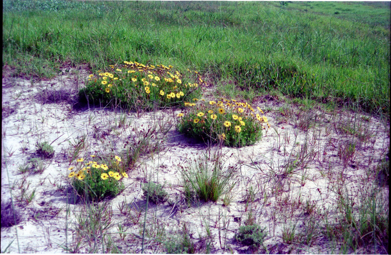 - 3 Fine examples of Ursinia anthemoides growing in pure sand on an otherwise well-grassed dune. The season had been exceptionally good as evident by the growth of grass in the background.
