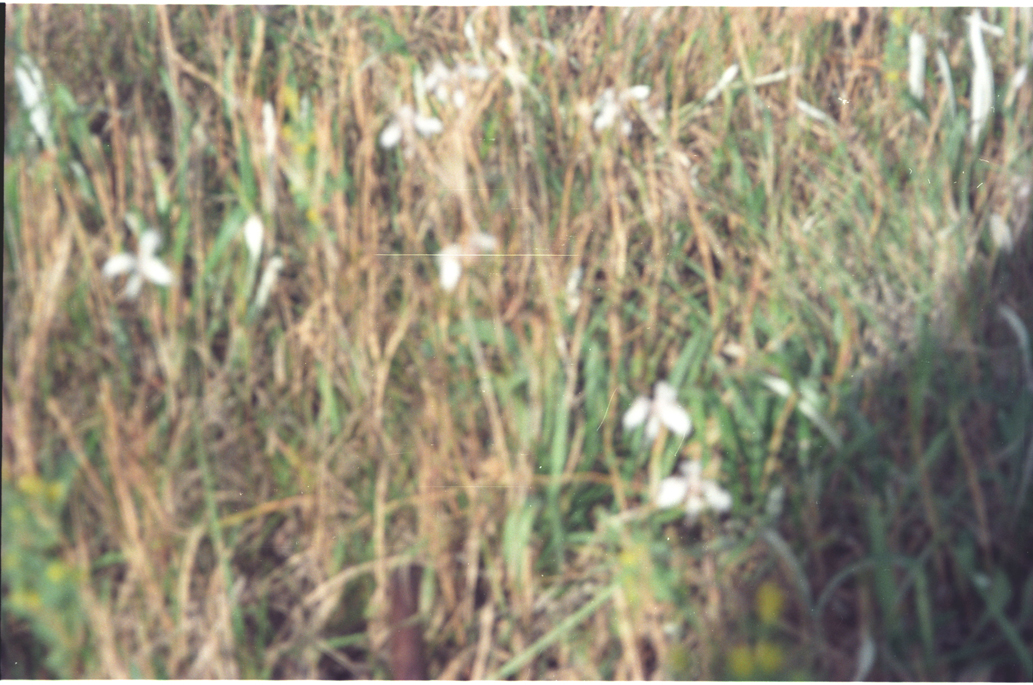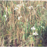 - Seven flowering near-white ??? On long grass. Close shot, others scattered nearby, very windy.