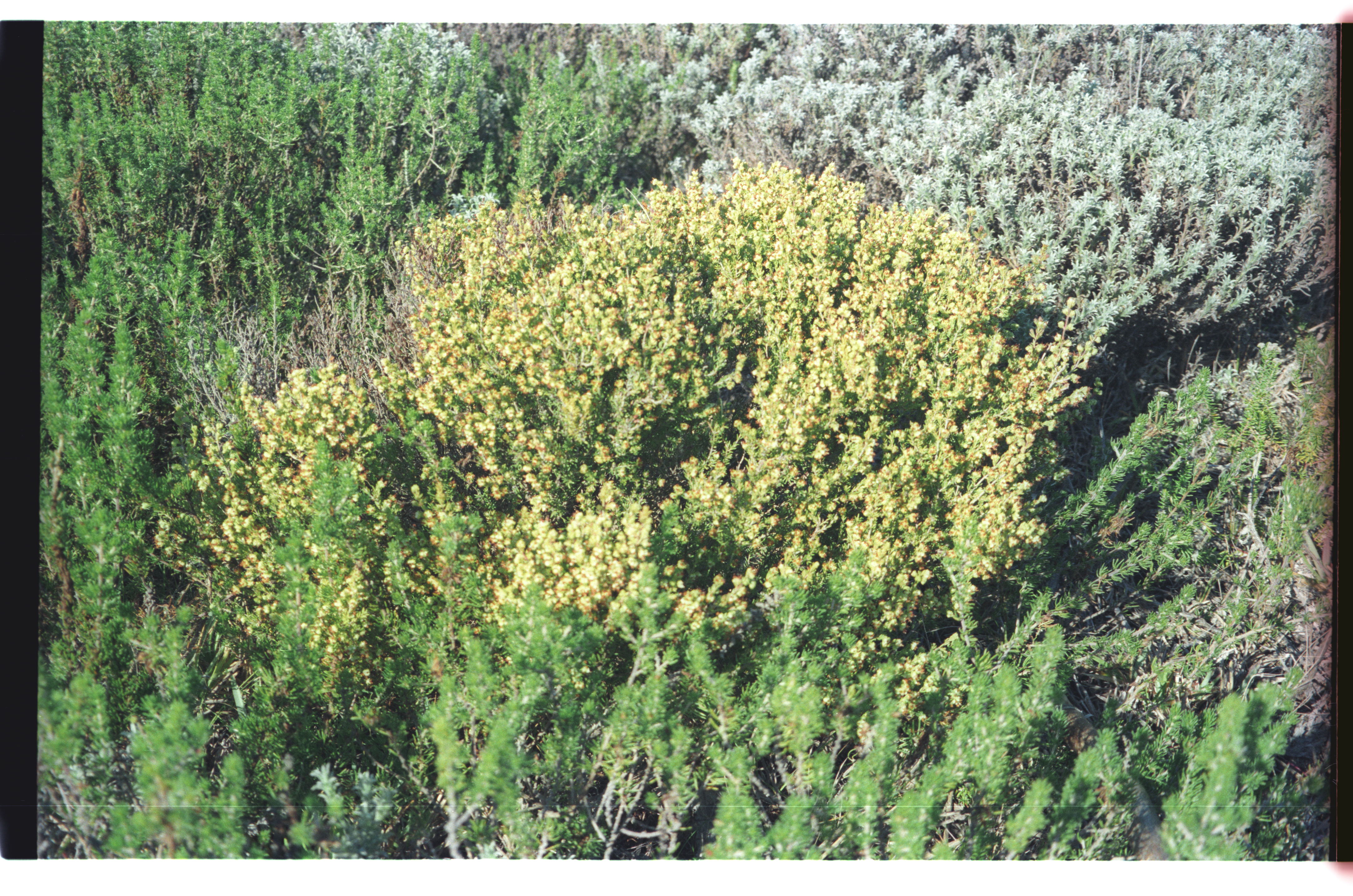 - Overall photo of the type of 'heathy' fynbos veld with Erica glumiformis in pale yellow flower. The Sun Garden Hotel in background. This was a relict patch of fynbostype veld which once covered the Summerstrand area prior to its development for housing. This patch will disappear in the not-too-distant future taking an interresting veld type with it.