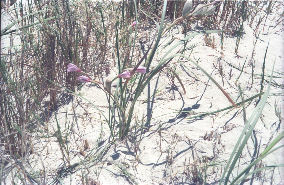- Gladiolus guenzii in flower and seed in pure sand of the dunes. This species is especially plentiful in this small area.