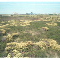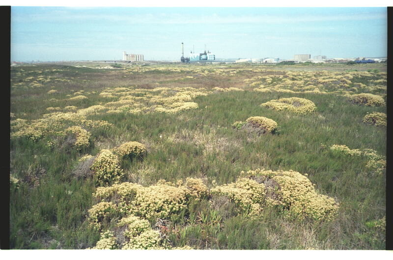 - Carbon Black factory in background. Patches of Syncarpa striatum (ex Helichrysum striatum) dotted among the coarse hedge-like growth.