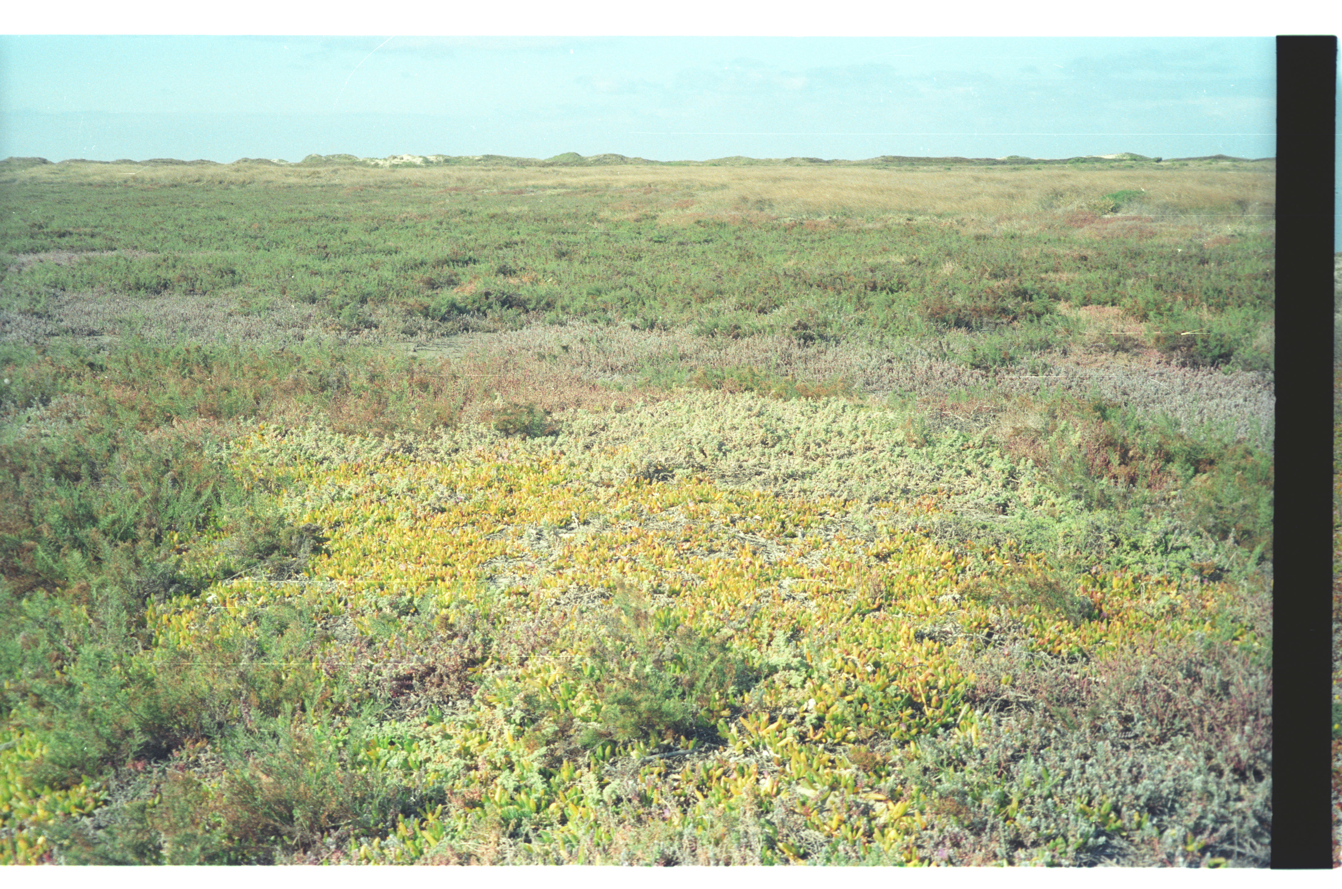 - Yellow folliage of Disphyma crassifolium with contrasting shades of other saltmarsh, including reds of Salicornia near the Carbon Black factory, Port Elizabeth. No flowers on this patch of Disphyma.