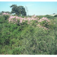 - Pelargonium peltatum swarming over low-growing scrub-bushes. This area due for destruction under the urban sprawl in the future.