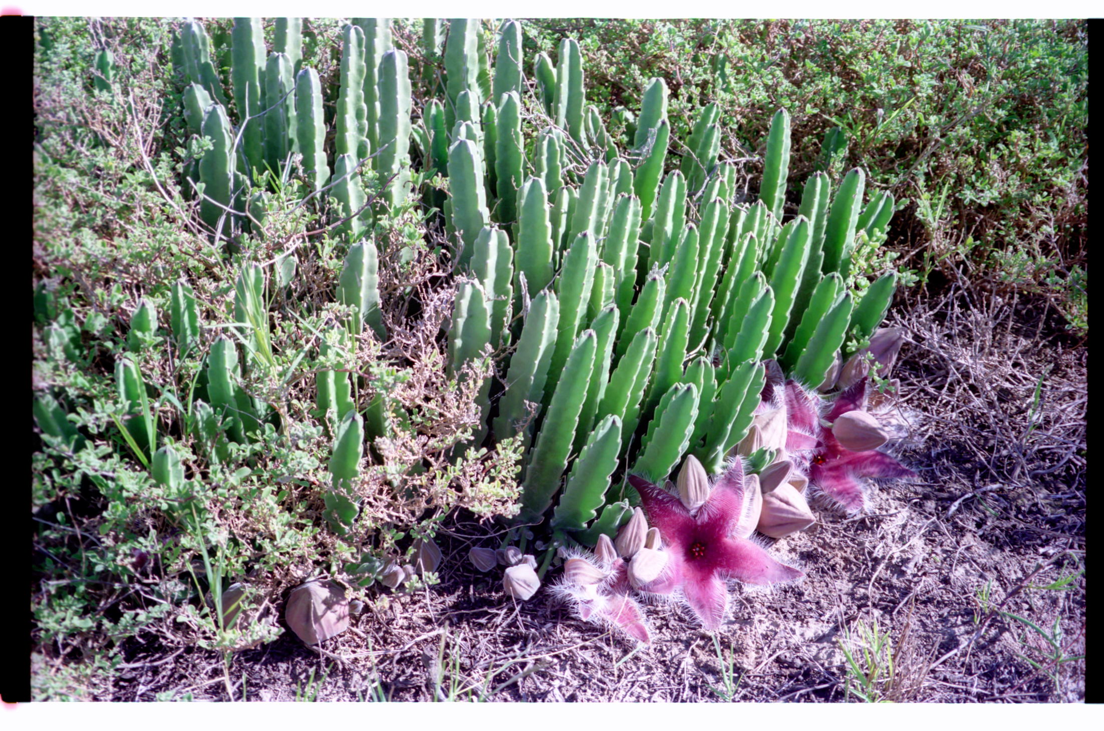 - Fine flowering specimen of Stapelia grandiflora, of which several other plants grew nearby. This plant had 7 flowers with 22 buds out of the picture.