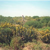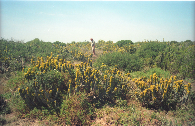 - William Massyn among several good stands of Euphorbia ledienii in full flower with bushclumps interspersed. Swartkops River valley about 500m north of the developing factory sites. This area may well soon be absorbed by urban sprawl.