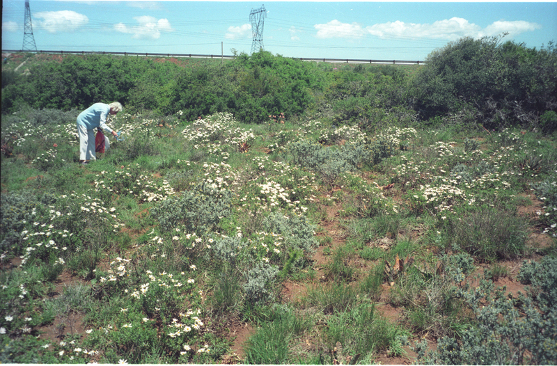 - Fine spread of Dimorphotheca cuneata, Redhouse Daisy. Swartkops Road in background. This area will probably be lost to housing in the near future
