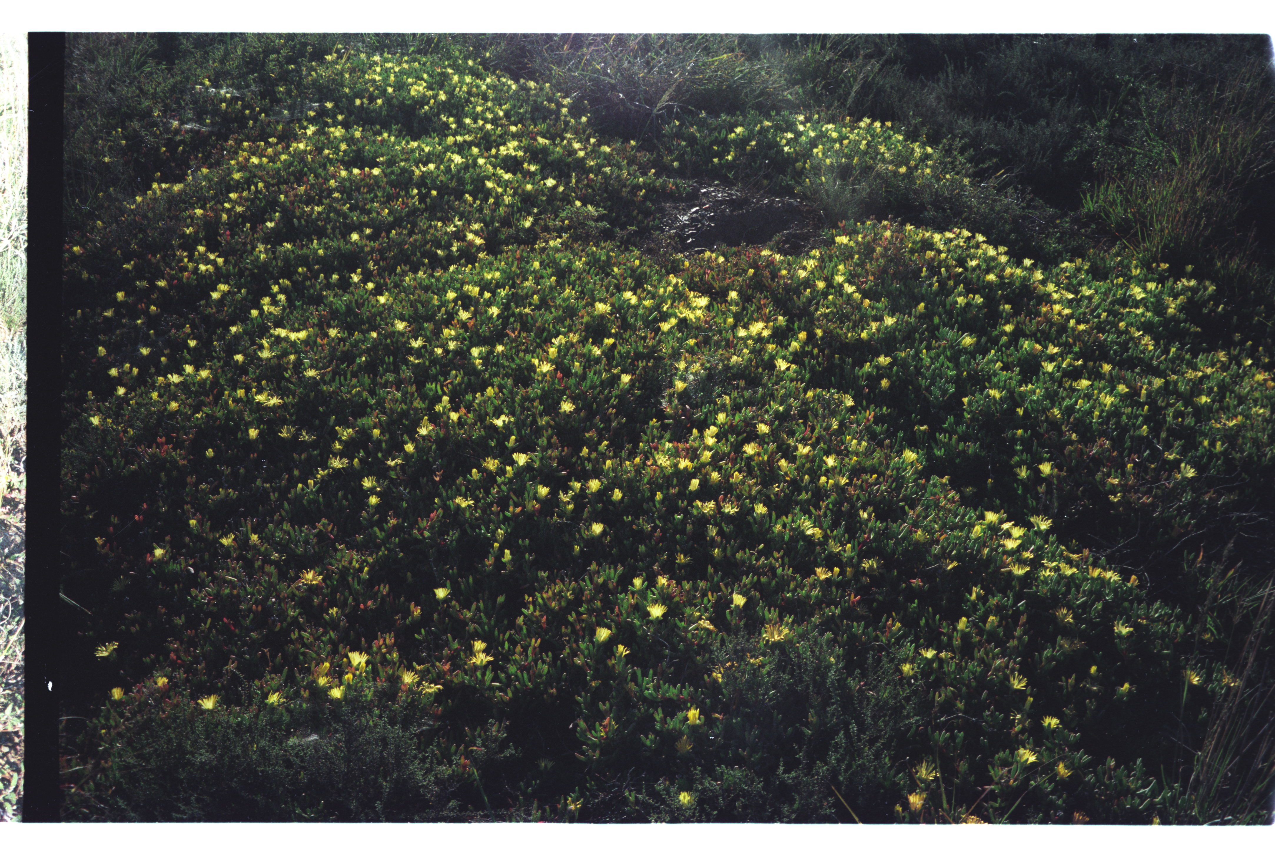 - Large spread of Mesembryanthemum protected by roadside fences. Does not survive outside fences.