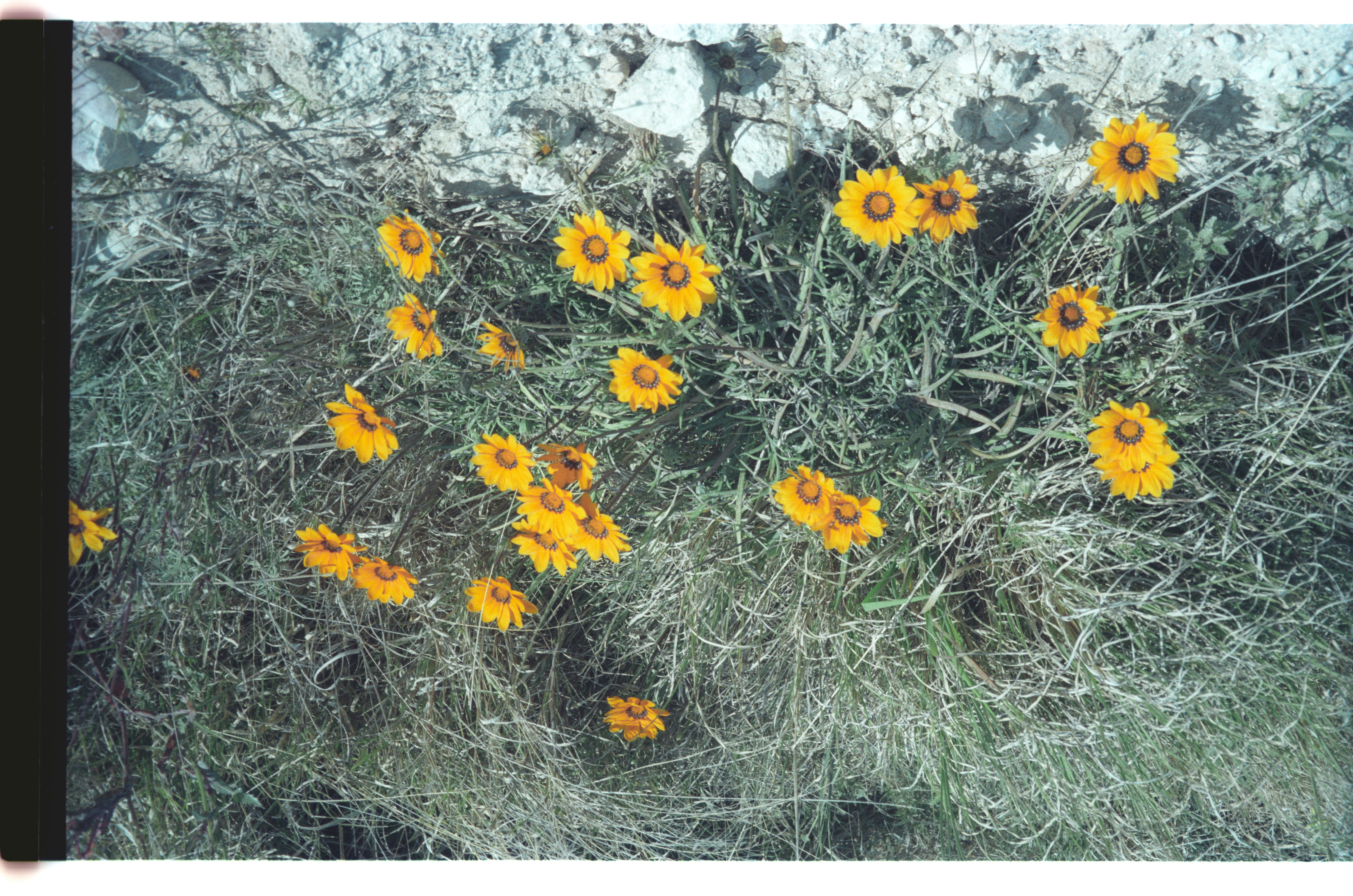 - 24 Blooms on a single Gazania krebsii plant, despite such dry conditions that no other Gazania or any herb was flowering at the time. Plant on very dry, hard Kalkklip roadway.
