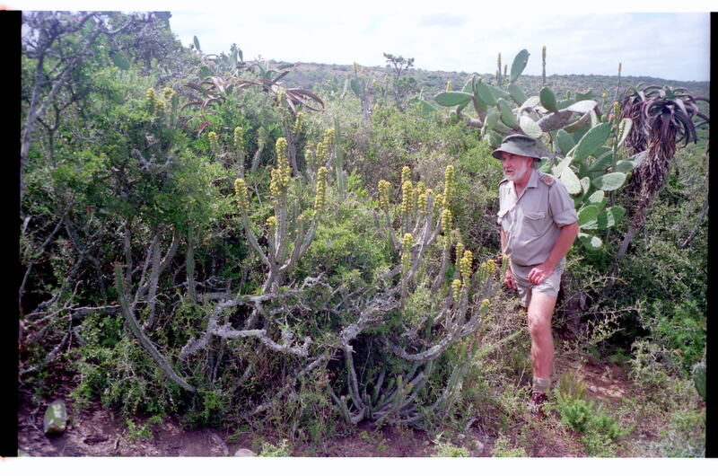 - Euphorbia ledienii in dense bushveld. William Massyn of Van Staden's Wild Flower Reserve in picture.