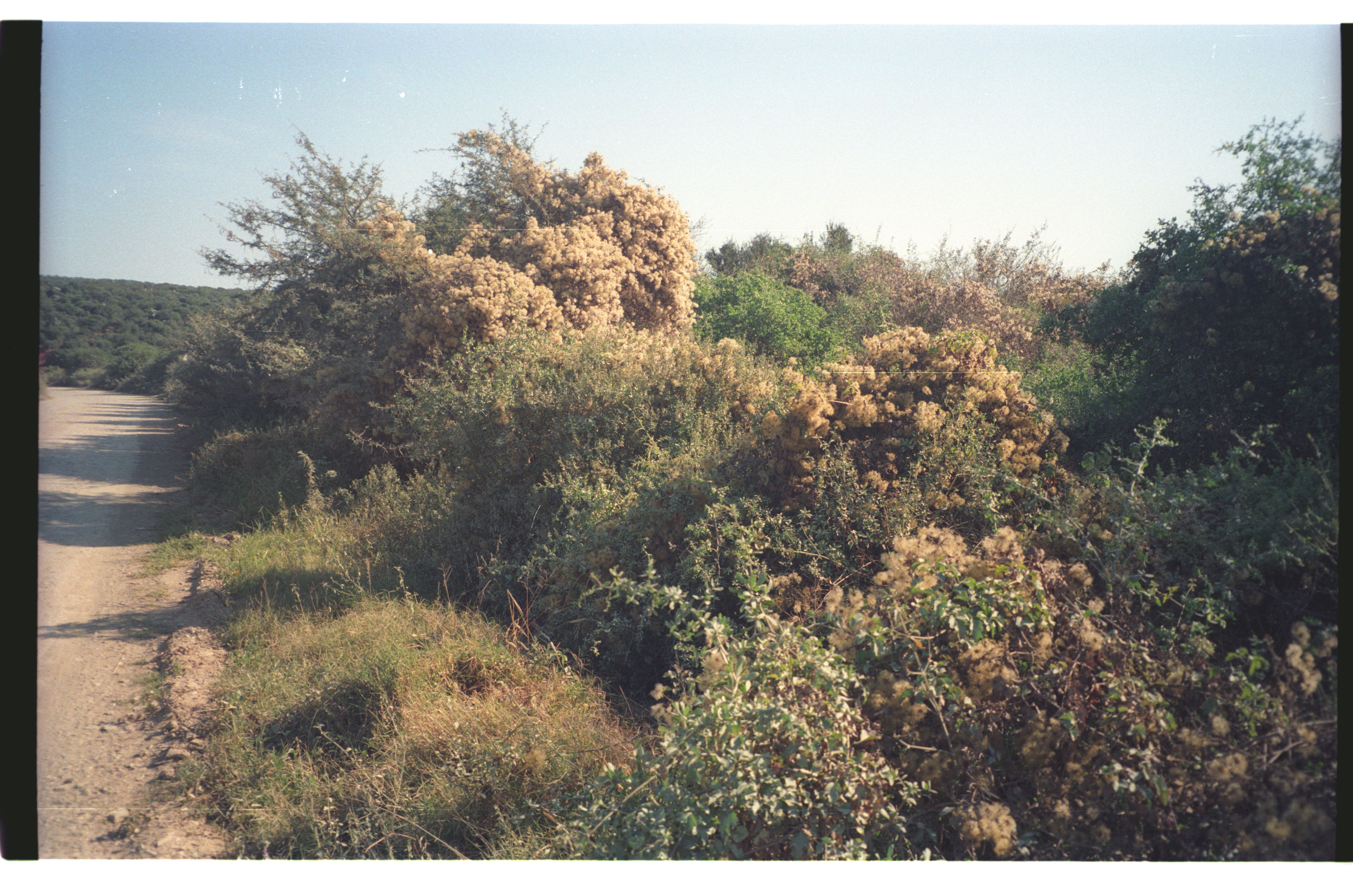 - Fine spread of seeding Clematis brachiata over roadside bushes after a good flowering season.
