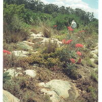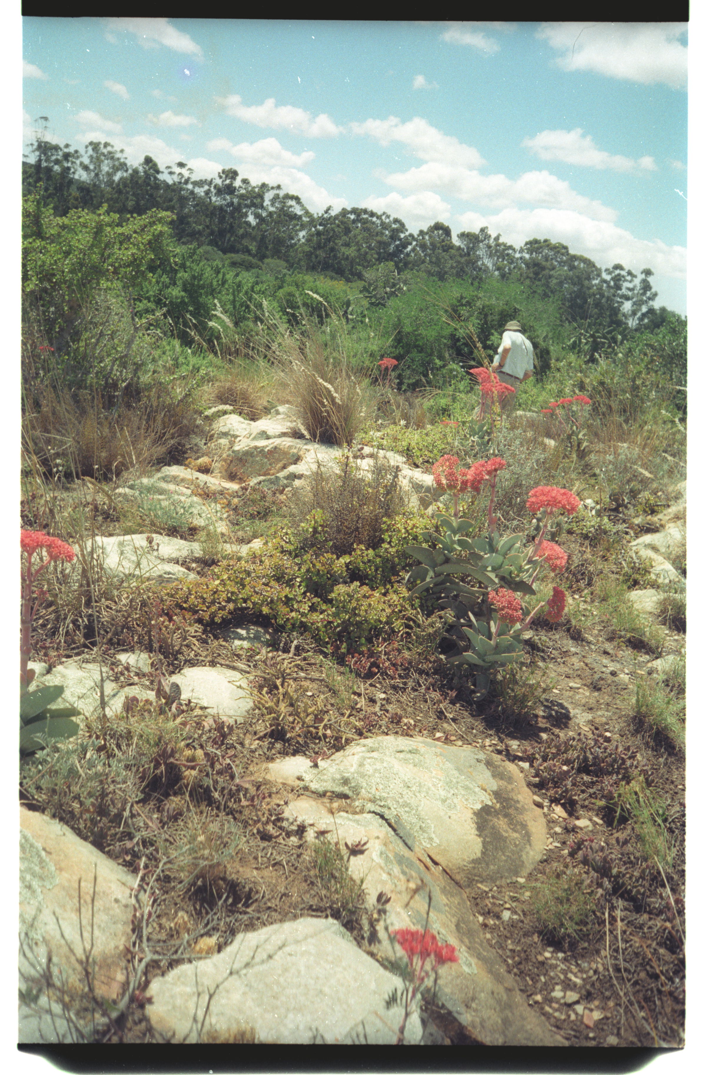 - The only outcrop of rock known in what was once dense Valley Bushveld. Well stocked with succulent plants including Crassula perfoliata. Note Spekboom bush in right background.
