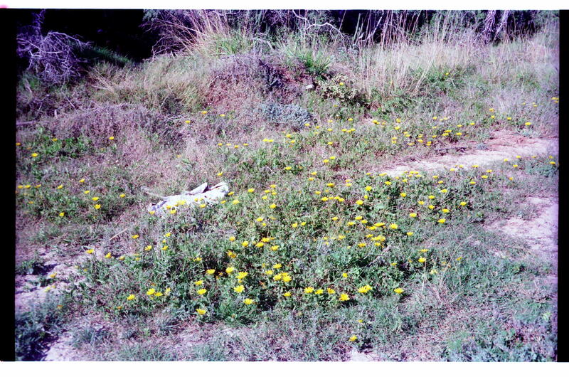 - Patch of Cuspidia cernua in hard, shallow limestone at roadside. End of good spell and beginning of dry spell.