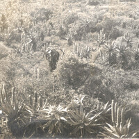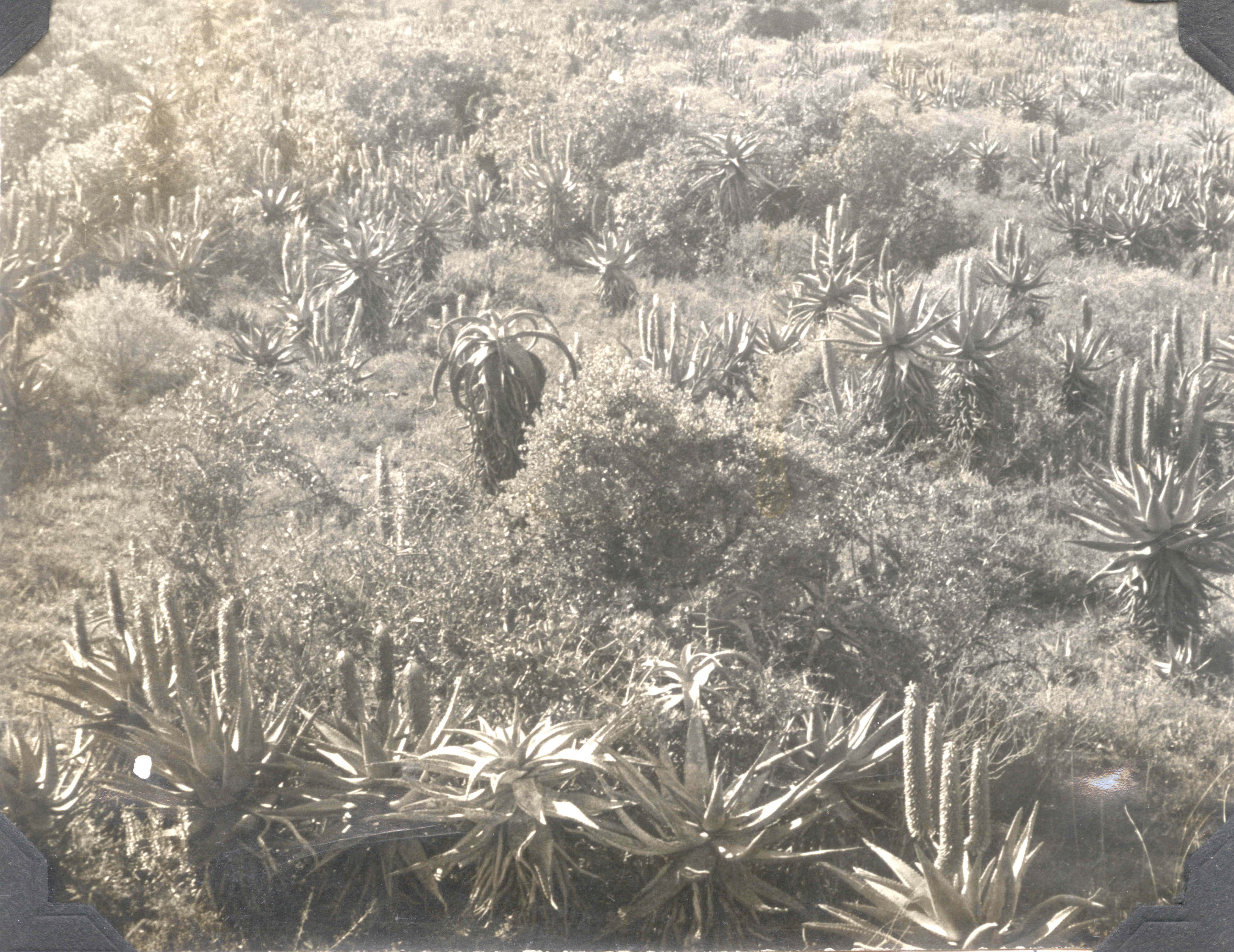 - Mixed aloe species in good number on dry veld. Aloe ferox in flower with probably Aloe africana among them.