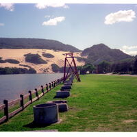 - Lagoon on left. It seems that waggoners of the 18th century, after crossing sands at the mouth trekked up through the first gorge to the right of the sand-dune en route to 'Rietfontein' farm outspan.