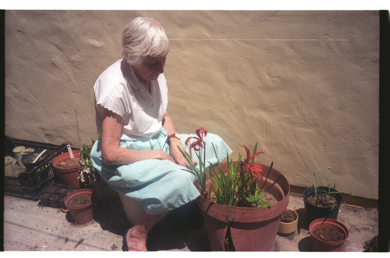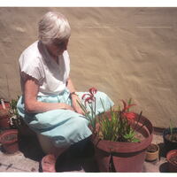 - Helen Vanderplank with Maltese Cross Lilies grown from seed when plants cast out at roadside, abandoned by some gardener in Port Elizabeth's Western Suburbs.