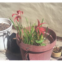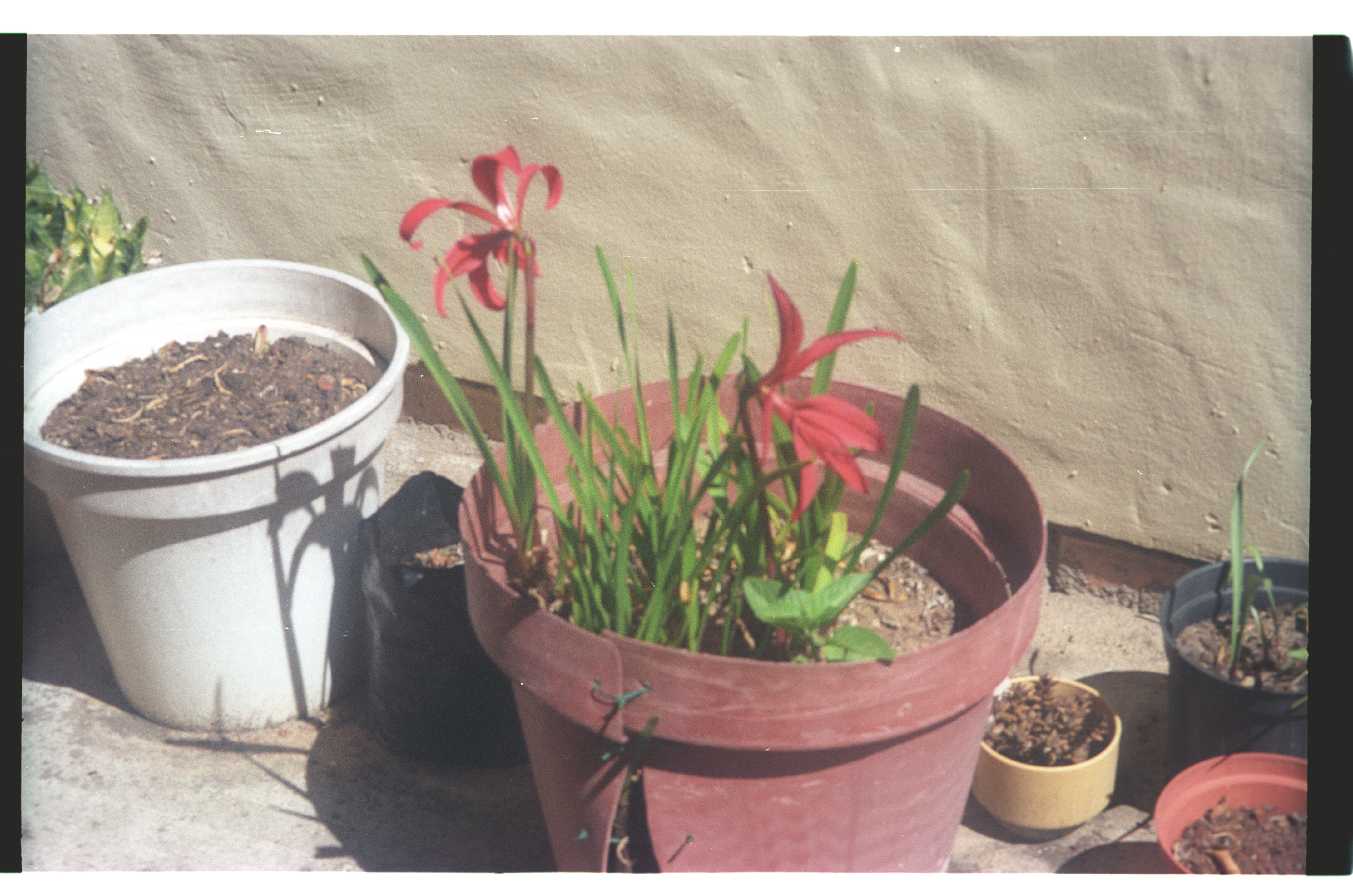 - Helen Vanderplank with Maltese Cross Lilies grown from seed when plants cast out at roadside, abandoned by some gardener in Port Elizabeth's Western Suburbs.